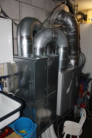 Vandaag gewerkt aan de wtw unit. Eerst in het afzuig gedeelte een extra demper geplaatst. In de wc’s en in de huiskamer was als het volledig stil is het ventilatiesysteem te horen als hij op een hogere stand stond. Op zich niet storend maar om het geheel mooier te maken een extra demper geplaatst. Moest echter wel een gedeelte weer los halen en opnieuw monteren. Daarna de enthalpiewisselaar geplaatst. De groene is de oude warmtewisselaaar en de bauwe die nieuwe. Op de detailfoto van de wisselaar staat de oude links en de nieuwe rechts. De enthalpiewisselaar is iets zwaarder van gewicht dan de normale warmte wisselaar. En nu maar weer een jaar testen en meten.